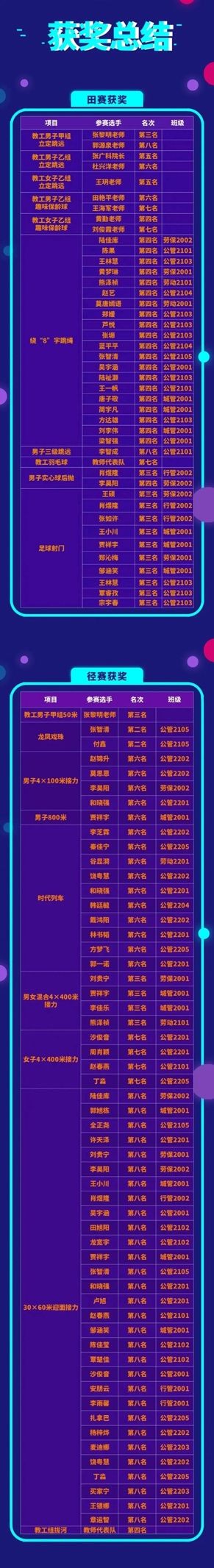 个人项目中,我院肖煜隆同学和李昊阳同学分别斩获男子实心球后抛比赛第三名和第四名的佳绩。在男子800米跑步比赛中,贾祥宇同学取得第六名的好成绩。在男子三级跳远比赛中,李智成同学也获得全校第八名的优异成绩。在男子乙组立定跳远中张广科院长和杜兴洋主任斩获第五名和第六名的好成绩;教工男子甲组立定跳远中,张黎明老师和郭源泉老师分别夺得第三名和第八名;王玥老师在激烈的角逐中取得了教工女子乙组立定跳远第五名的佳绩。张黎明老师在教工男子组50米短跑中获得第三名的好成绩。在新项目教工组保龄球比赛中,我院田艳平副院长与王海军老师在男子乙组比赛中脱颖而出,分别斩获第六名与第七名的佳绩;女子乙组中黄勤老师和刘俊霞老师分别取得了第四名、第七名的好成绩。