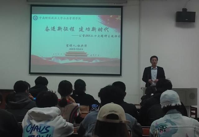 新闻网讯(文稿:程佳曦、摄影:程佳曦)为深入学习党的二十大精神,按学校统一部署,学院领导高度重视,在全院学生中开展“奋进新征程 建功新时代”党的二十大精神主题班会宣讲活动。11月23日下午3时,公管2101班学习党的二十大精神主题班会在文泉楼203会议室如期召开,本次班会荣幸邀请到公共管理学院MPA教育中心主任、公管2101班级导师、学校党的二十大专家宣讲团成员杜兴洋教授宣讲党的二十大精神。本次班会由2021级辅导员黄勤老师主持。