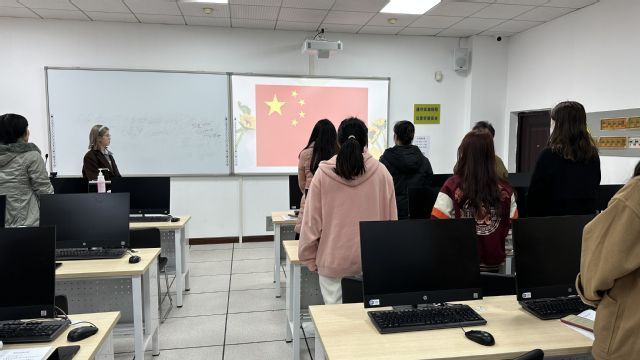 在报告完参会情况、宣布党员数量符合开会要求之后,本次支部大会正式开始。首先是第一项,奏唱国歌。全体起立面向五星红旗奏唱国歌,“起来,不愿做奴隶的人们——”,大家心潮澎湃地齐声歌唱,响遏行云的歌声绕梁许久。唱毕后,12名待转正的预备党员轮流上台汇报预备期间的思想、工作情况。