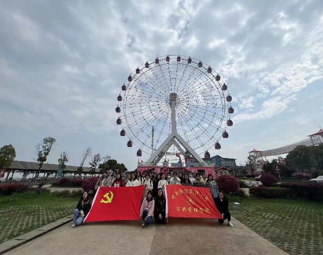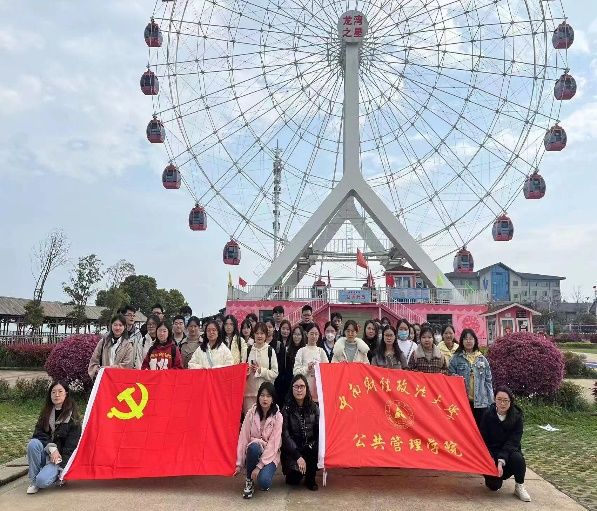 在行管2002班班长卢成霞的有序组织下,历经长达一个半小时的车程,同学们终于顺利到达了梁子湖景区。下车后,卢成霞组织同学们集合,选定于景区的摩天轮下进行集体合影留念。接着她向大家强调了本次问卷调查活动的具体要求,并给每个同学都分发了一份问卷,让大家解散各自寻找目标人群进行问卷访问。