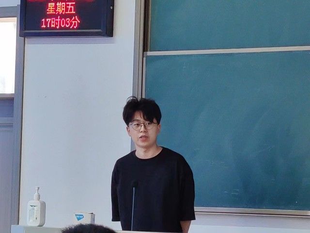 会议伊始,林逸涵从专业选择、公共课复习、复试准备、备考心态三个方面分享经验。他说,英语的学习除了坚持记单词和钻研往年考研真题以外,还要多注重写作;政治不能只背诵,也需要听课理解,有付出才有收获。复试准备方面,他讲到要尽早联系导师,了解复试内容,才能更有针对性的准备。关于备考心态,要制定好长期计划和短期计划,按自己的节奏复习,才能避免焦虑;备考后期,要专注自己不要受到他人影响,当收获感下降的时候,要及时检视自己的方法是否正确,以便及时调整。