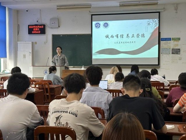 新闻网讯(学生通讯员 刘裔冰)人无信不立,业无信不兴,国无信不强。诚信教育是培育和践行社会主义核心价值观的主要内容。为大力弘扬诚信美德,引导同学们进一步树立诚信意识,养成诚信待人、处事、学习、立身的良好行为习惯,营造良好的校园氛围,行管2101班与行管2102班于5月24日上午9:30在文泰楼508教室联合开展以“诚而有信,养正崇德”为主题的公民基本道德规范教育主题班会。本次班会由行管2102班团支书陈果同学主持,行管2101班和行管2102班两个班的全体同学共同参与。