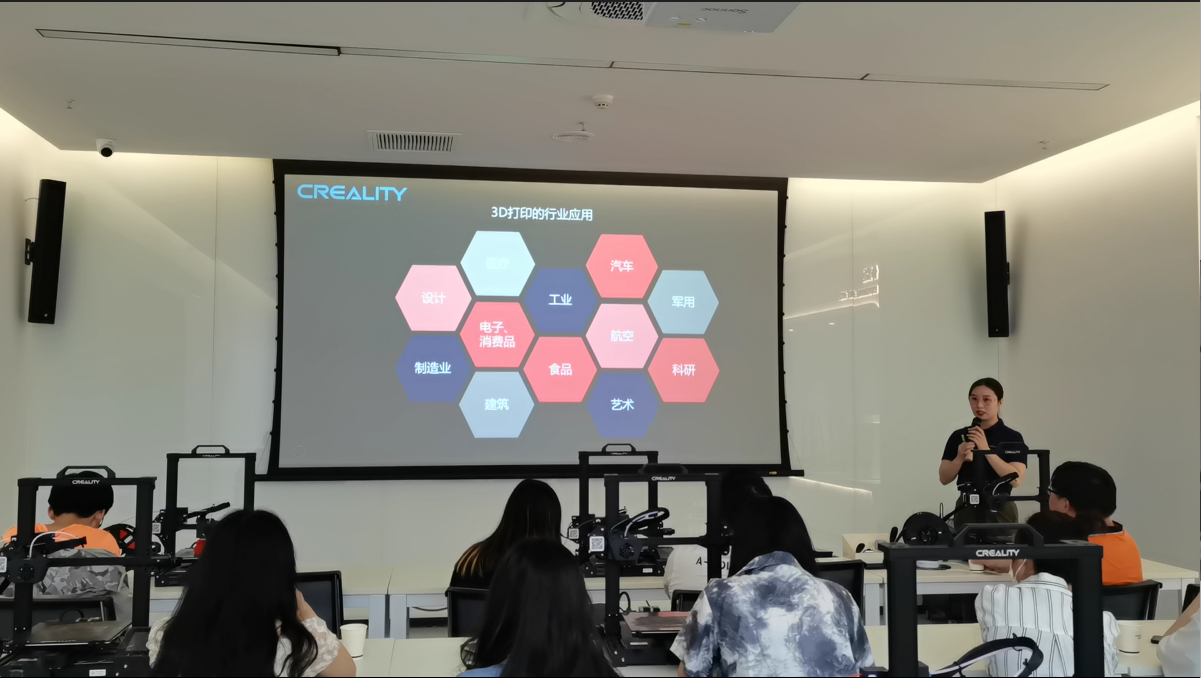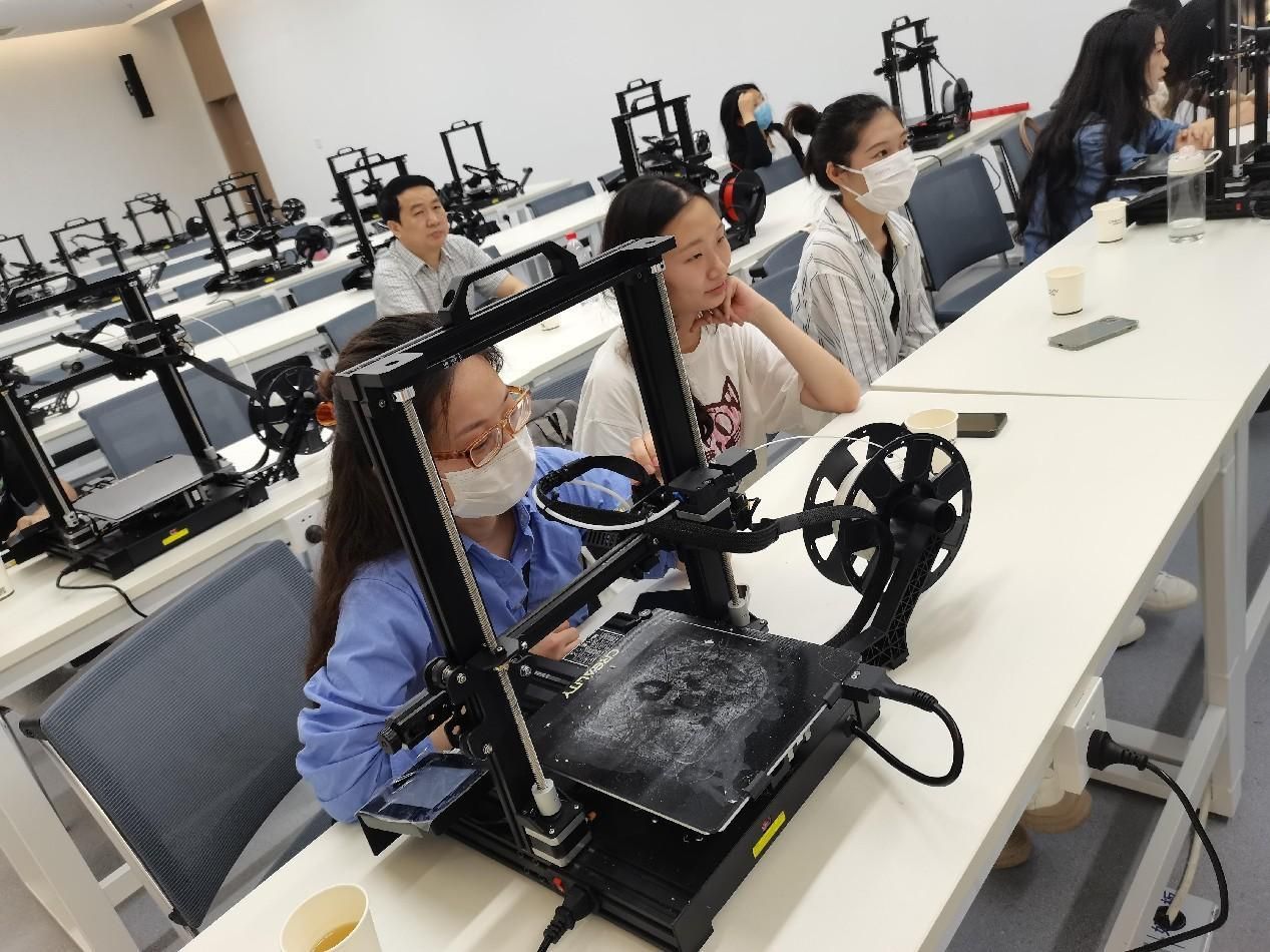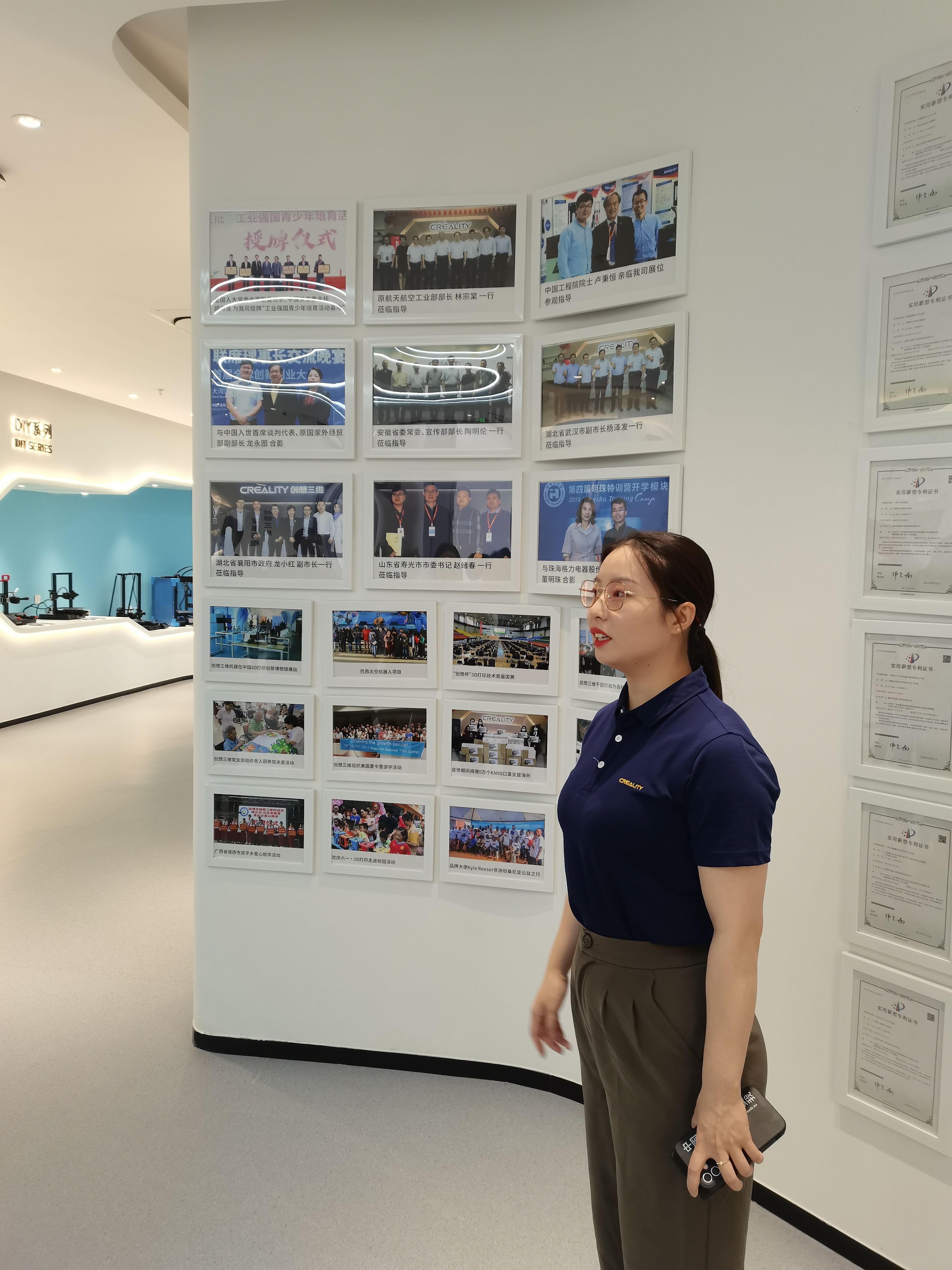 随后参观了3D打印展厅,展厅内为大家展示了创想三维的发展历程、3D打印设备(DIY、整机、光固化)、生态周边等,不同应用领域的3D打印模型展示区和3D打印体验区更是赢得了参观师生的高度认可和赞赏。