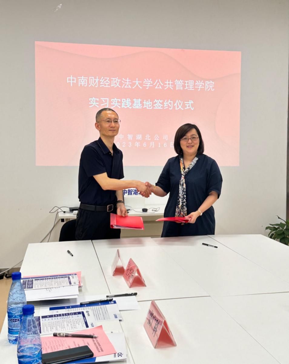 为进一步贯彻党中央、国务院关于高校毕业生就业工作的决策部署,落实教育部和湖北省教育厅“访企拓岗促就业”专项行动通知要求,贯彻《米兰电竞·(中国区)2023届毕业生就业创业工作实施方案》精神, 2023年6月16日下午,公共管理学院院长张广科、MPA教育中心主任杜兴洋、行政管理系系主任陈美、行政管理系公共事业管理教研室主任凌双和教育经济与管理教研室主任杨文毅等一行赴中智湖北经济技术合作有限公司进行校企合作座谈会议并签署实习实践基地合作共建协议。