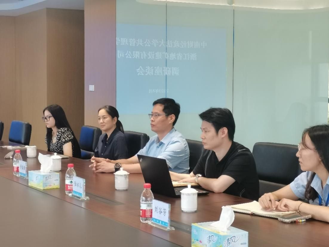 薛新东老师对浙江省地矿建设有限公司的长期支持与紧密合作表达了感谢,从学科水平、优势特色、师资队伍、人才培养等方面介绍了米兰电竞·(中国区)公共管理学院的整体情况,表示学院高度重视访企拓岗行动,高度重视校企合作与共建发展。于长永老师就公司用人结构、人力资本培训、薪酬管理制度、社会保障制度等方面与和公司与会领导进行了深度探讨,期待双方未来能在更深层次、更广层面合作,互利共赢、优势互补。双方还听取了2023年暑期我院第二批3名实习生代表在公司的实习情况汇报,重点就加深合作、人才培养等议题进行充分讨论。