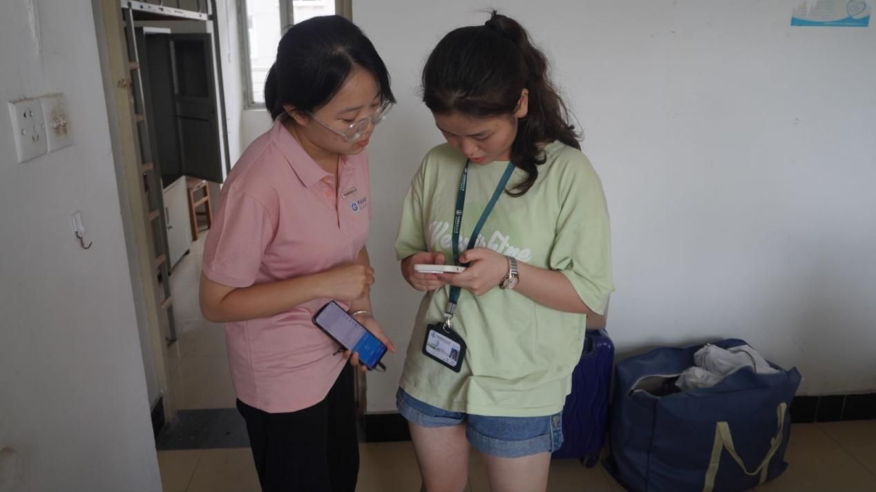 随后,学院领导老师又来到新生宿舍,与新生们亲切交流,了解新生们到校后的适应情况。