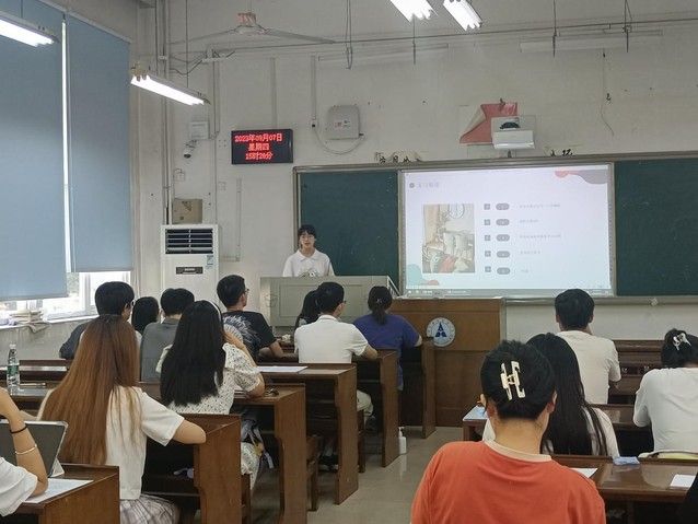 新闻网讯(通讯员 刘裔冰)风吹一片叶,万物已惊秋。随着缕缕秋风带来些许凉意,2021级的同学们也正式迎接了大三学年的到来。为帮助同学们更好地把握住大三学年这一关键时期,鼓励同学们为自己的未来做好决定、做足准备,行管2101班于9月7日下午两点半在文澜楼102教室召开了本学期第一次班会,本次班会由班长李佳仪主持,班级导师邓光平老师莅临现场,全体班级成员到场参会。