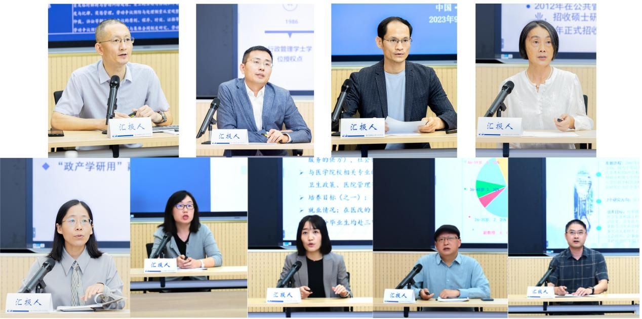 随后,公共管理学院院长张广科教授就公共管理一级学科博士学位授权点、公共管理硕士专业学位授权点整体建设情况向与会专家、领导进行汇报,张广科教授从学位点概况,基本条件、人才培养、社会服务和持续改进计划等方面进行详细汇报,重点介绍了近些年来公共管理一级学科博士学位授权点在鼓励科研创新、师资队伍建设、典型人才引育等方面取得的成果。庞明礼、于长永、蒋文莉、周红云、宋敏、蒋俊男、徐文、熊卫等8位二级学科点代表分别就各专业学科背景、教育特色、学科发展及展望等相关情况进行详细汇报。