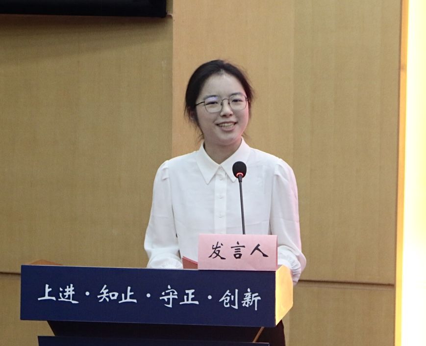 公管2301班李梦洁作为新生代表发言。她满怀激情地讲到:公共管理学院的历史光辉照亮着每一位同学前行,而学院的精彩未来也将由同学们继续开创。作为新时代的青年,同学们要以一脉相承的奋斗精神,在新时代拼搏出属于自己的精彩人生。
