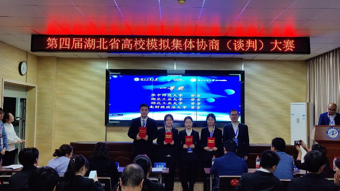 经过初赛和决赛的激烈角逐,我校代表队斩获资方队一等奖、劳方队二等奖,韩廷毓同学荣获最佳谈判员奖,黄宏伟、陈楠两位老师荣获优秀指导教师奖。