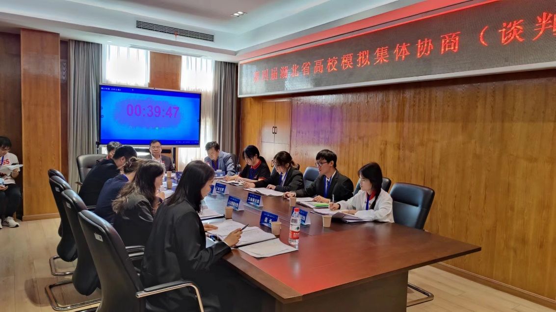 湖北省高校模拟集体协商(谈判)大赛旨在为省内各参赛高校打造一个政、产、学、研一体化建设的平台,为系统性整合劳动关系协商、企业管理、财务管理、人力资源管理、法学、人际沟通等相关专业知识,锻炼口才、拓展校级交流视野提供学习和锻炼机会。