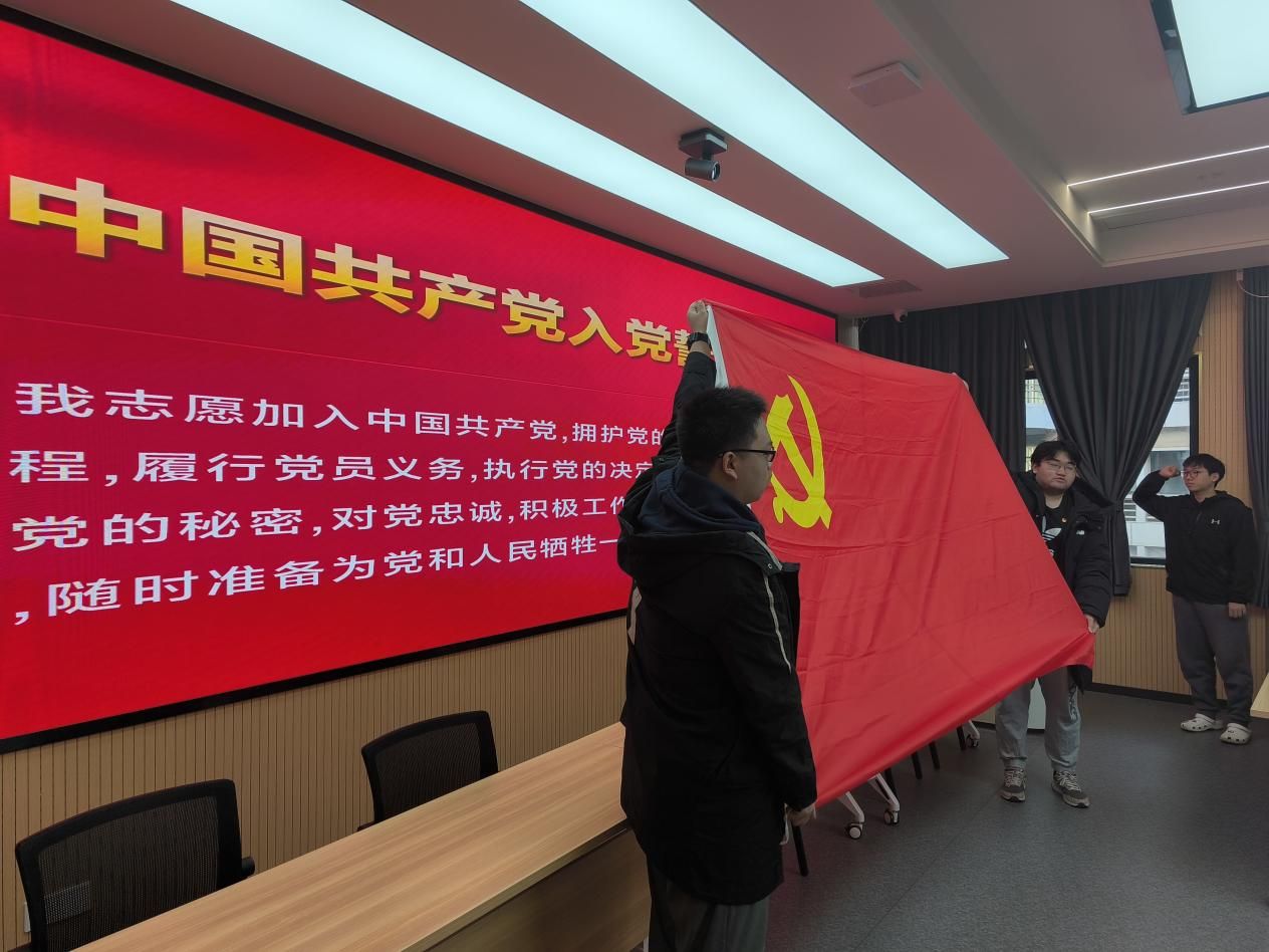 随后,全体党员面向党旗庄严宣誓,重温入党誓词。