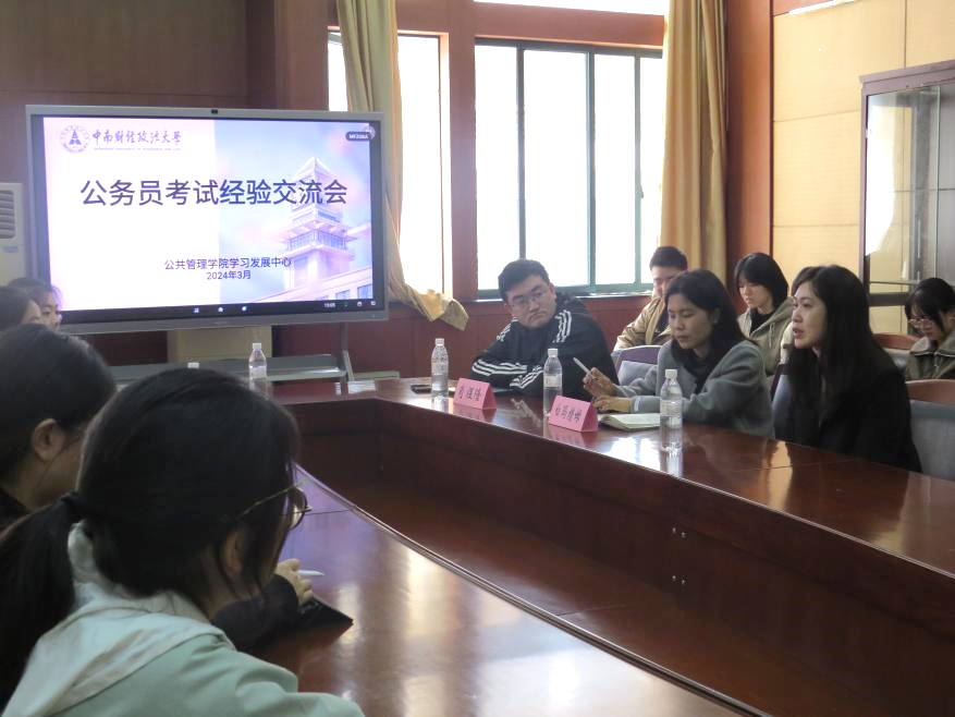 新闻网讯 (学生记者 潘文洁 摄影 白敏颖)为让同学们深入了解公务员考试,更全面地掌握考公的技巧和策略以提高备考的效率与水平,公共管理学院学习发展中心在3月28日下午三点于文泉楼303举办考公经验交流会,对同学们的困惑和问题进行解答。本次交流会由学习发展中心李荔老师主持,行管2002班肖煜隆、公管2001班王奕璇、劳动2001班张雨萌和行管2001班白玛措姆到场分享经验。