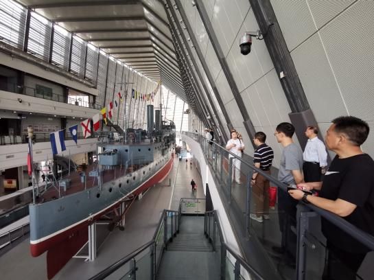 中山舰博物馆作为首批国家国防教育示范基地,安放着在武汉会战中被日机炸沉的百年名舰——中山舰,是中国近代史的重要见证物,它斑驳的伤痕,展现了抗日英烈为国捐躯、铁血悲歌的革命精神。通过参观学习,大家追寻中山舰的历史烟尘,瞻仰中山舰的昂首英姿,深切地感受中华民族百年来兴衰沉浮的历史,深切地缅怀革命先驱和抗战英烈。