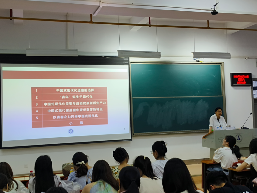 在最后一节课,公共管理学院魏萍副教授为同学们讲授了《新质生产力发展与新时代青年使命》。她强调,中国式现代化需要形成和发展新质生产力,而青年不仅因现代化的出现而诞生,更因现代化的发展而成为社会的先锋,于是她向同学们提出了殷切的期盼——以青春之力托举中国式现代化。