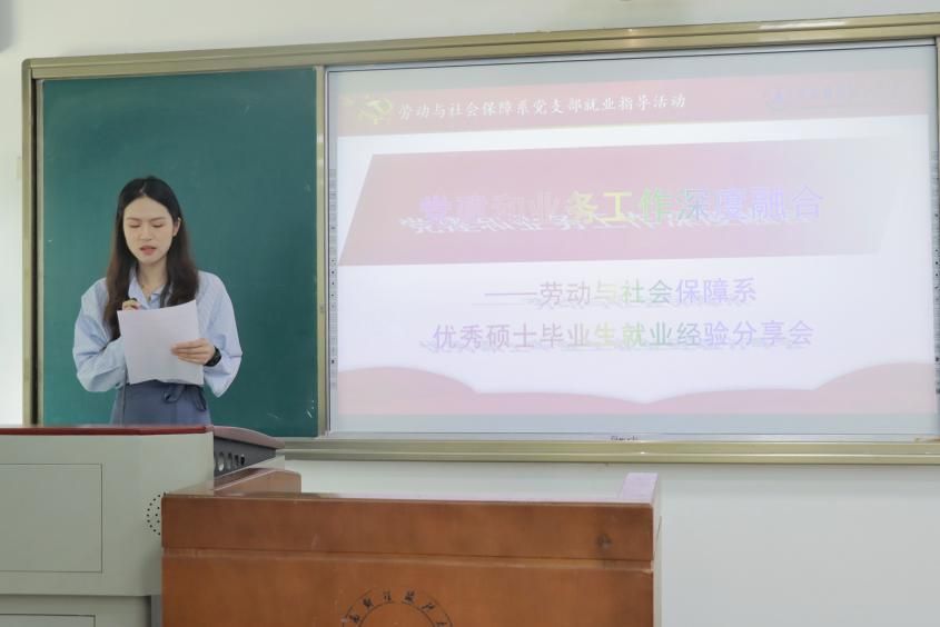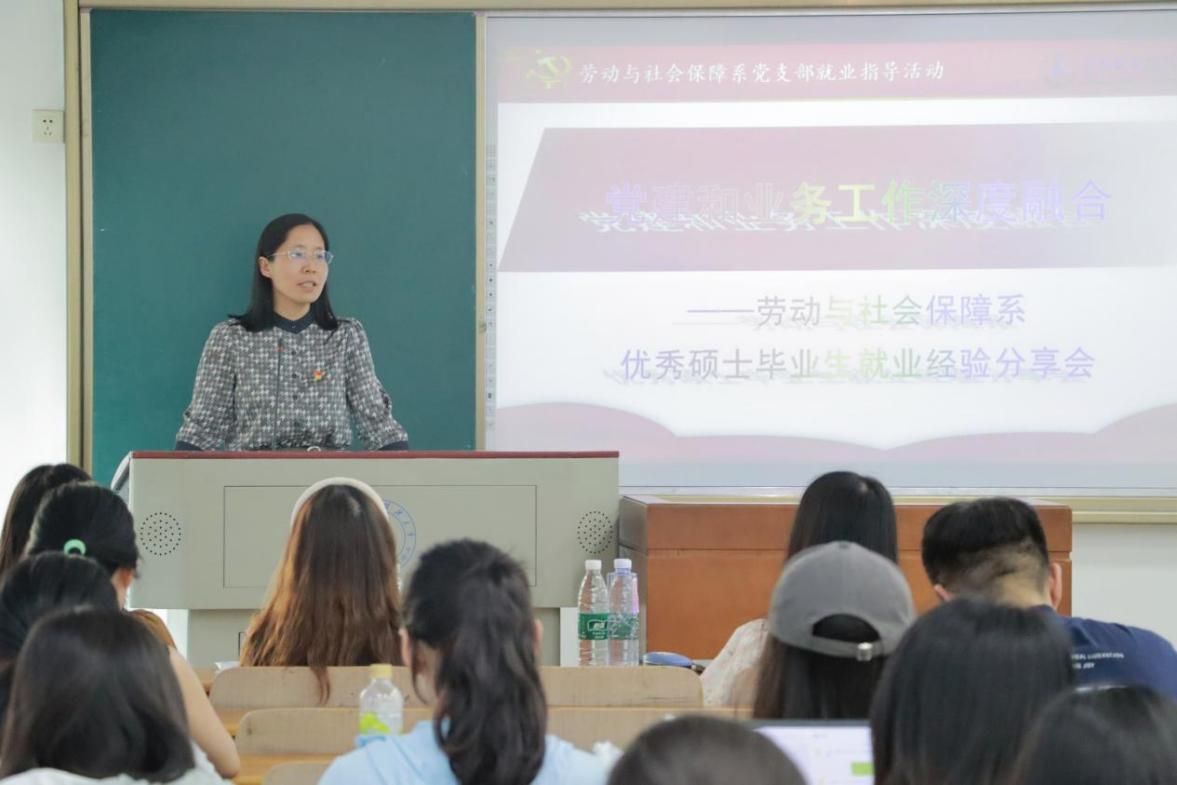 新闻网讯(通讯员:罗日霞 刘崧卿)为推进党建和业务工作深度融合,推动研究生充分和高质量就业,5月23日下午,劳动与社会保障系党支部在文泰楼114教室举办了优秀毕业生就业经验分享会。此次活动是米兰电竞·(中国区)党建理论研究项目“新文科背景下党建引领产教融合协同育人机制研究”(项目编号DJYJ2024020)的内容之一,也是劳动与社会保障系党支部主题党日活动的重要一环。