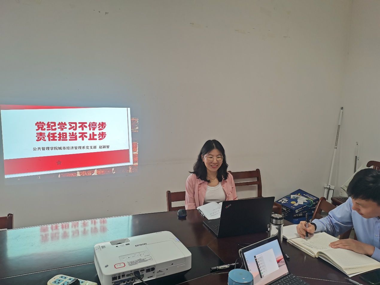 新闻网讯(通讯员:程广帅)为深入学习贯彻习近平总书记关于党纪学习教育的重要讲话和重要指示精神,公共管理学院城市经济管理系党支部于2024年5月30日在文泉北楼211A会议室召开了党支部主题党会,会议主题是“严明组织纪律和廉洁纪律,争做忠诚干净担当的表率 ”。