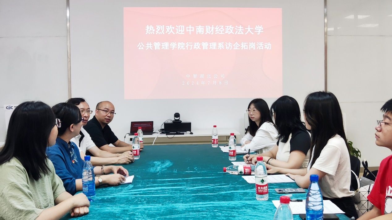 新闻网讯(学生记者 郑茹卿)为进一步落实教育部和湖北省教育厅“访企拓岗促就业”专项行动通知要求,优化高校人才培养体系,拓宽学生实习就业渠道,实现毕业生与用人单位的有效匹配,2024年7月8日,公共管理学院行政管理系邓光平教授与凌双副教授带领6名本科生前往中智湖北经济技术合作有限公司开展访企拓岗专项活动。
