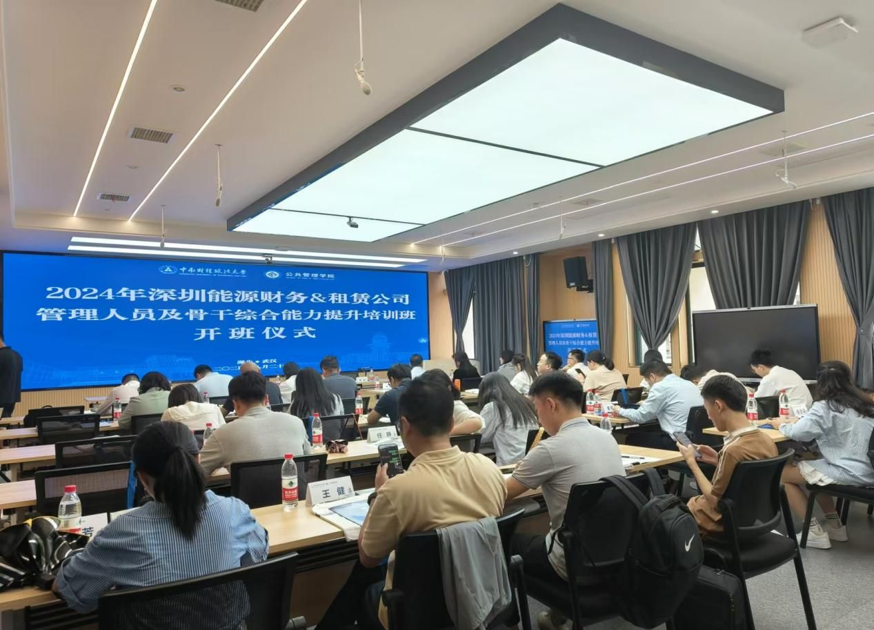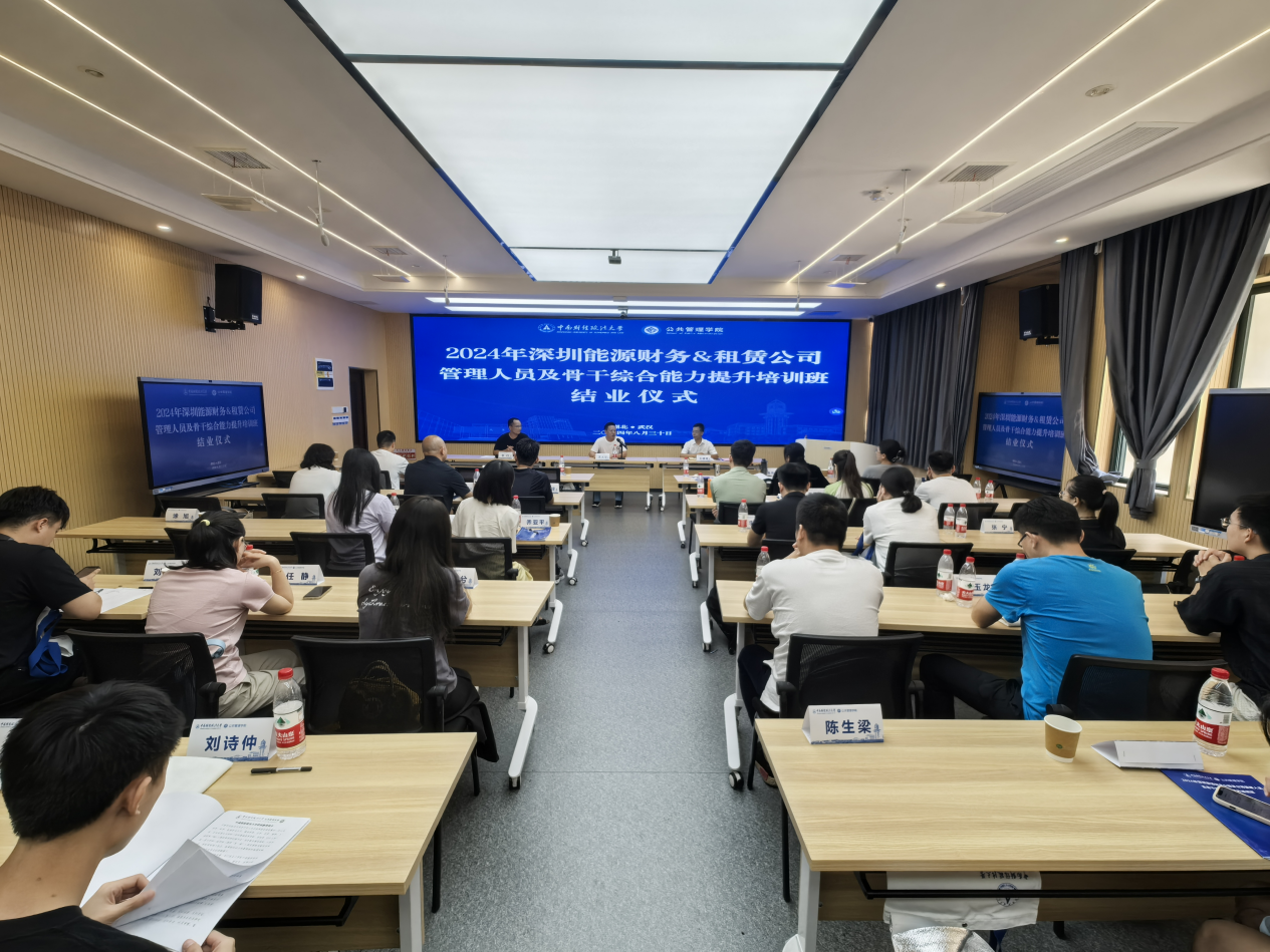 新闻网讯(通讯员:张行 龚诗棋)2024年8月26日至8月30日,深圳能源财务&租赁公司管理人员及骨干综合能力提升培训班在我院顺利举办。公共管理学院党委书记王建荣、副院长田进分别参加了培训班的结业和开班仪式,深圳能源财务有限公司总经理朱太华出席,学院社会服务与培训部主任张行主持开班和结业仪式,32名来自深圳能源财务&租赁公司管理人员及骨干参加。