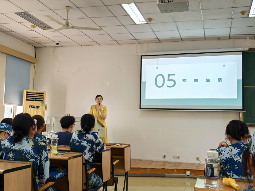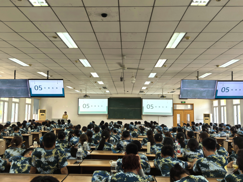 活动尾声,李荔老师为新生们讲述了校园生活方面的有关规定及注意事项,详细说明了防电信诈骗、宿舍消防安全和电动自行车骑行安全等要点,旨在提高新生的安全意识和自我保护能力,帮助新生了解常见的安全风险和防范方法。除此之外,李荔老师为新生们说明了学校荣誉称号评选的有关内容,并介绍了“博文杯”“明理杯”“厚德杯”和“济世杯”等竞赛项目,也针对校园医保、校园网和社团等问题进行答疑解惑。同学们积极互动,伴随着一个个问题的解答,也进一步了解到大学生活的点点滴滴,现场氛围活跃。