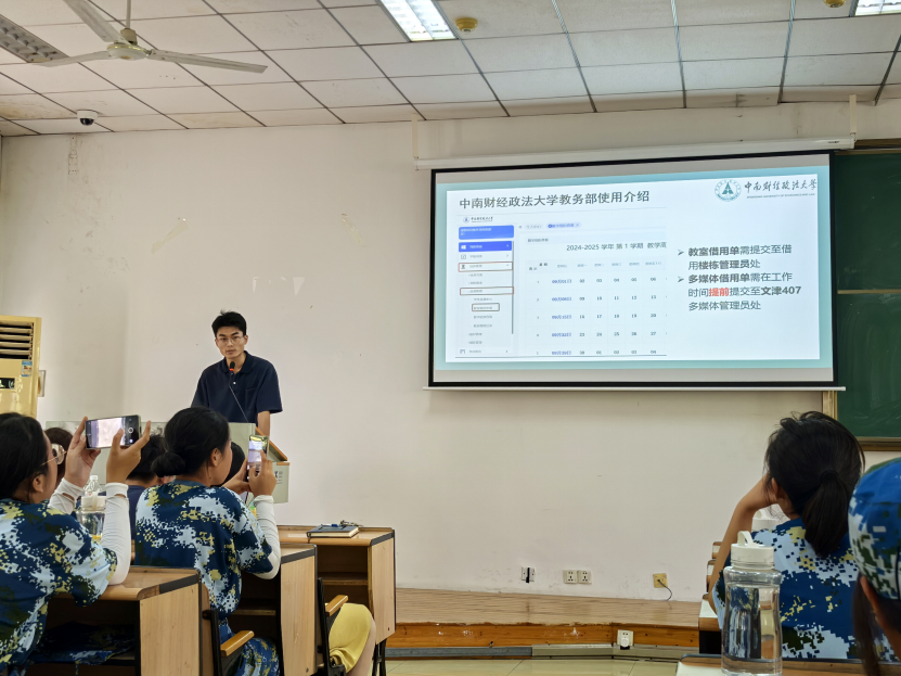 此外,为了让新生们熟悉掌握学校教务信息的查看,王立业同学介绍了米兰电竞·(中国区)教务部使用方法,并演示了教室借用、校历查阅等操作流程。这为新生了解大学学习安排,合理规划学业生活提供了初步帮助,有助于后续学业规划教育的开展。