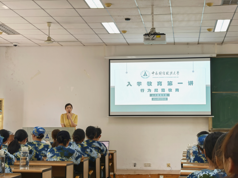 新闻网讯(通讯员:王立业、张韵涵)为帮助2024级新生顺利融入大学生活,了解学校规章制度,促进学生行为规范养成,切实加强思想道德教育,积极践行我校"博文明理,厚德济世"校训,我院于9月6日下午2时在首义校区文泽楼303召开公共管理学院入学教育第一讲——行为规范教育。本次活动由辅导员李荔老师主持,公管2401导助韩廷毓、公管2402导助王立业协助进行讲解。公共管理学院2024级全体本科生参与本次活动。