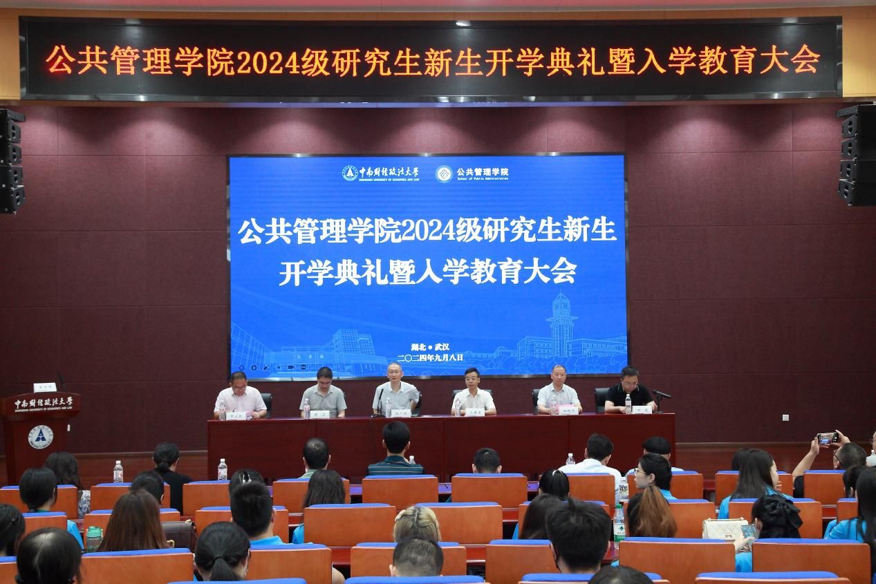 (通讯员 田雨 张子琪)2024年9月8日,公共管理学院2024级研究生开学典礼暨入学教育大会于南湖校区文瀚楼报告厅顺利举行。学院党委书记王建荣、院长张广科、副院长田艳平、熊卫,党委委员李云新,教师代表蒋俊男,学院党政办、研究生工作办公室,MPA 教育中心办公室等相关科室教职工、辅导员及全体2024级硕博研究生参加,大会由学院副院长田进教授主持。