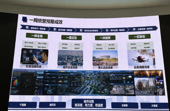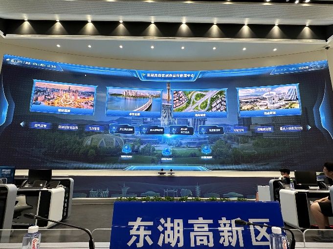 师生受到东湖高新区政务和大数据局副局长陈子龙、区城运中心综合组潘晶晶主任等同志的热情接待。陈子龙局长就东湖高新区城市运行平台的建设特点与难点进行了介绍。双方就新时代城市管理人才培养、实习实践、校府合作等方面进行了深入探讨和交流。光谷城市运行平台通过“一屏统览、一网统管、一体联动”,精准监测城市运行态势,打造光谷“最强大脑”,提升城市治理科学化、精细化、智能化水平。“城市大脑”定制了重大项目调度、无人机综合执法、胶囊房治理、市政管理、加油站智能监管、渣土消纳监管、燃气监管、保障性住房治理等十大特色应用场景,覆盖城市管理、市民生活的各个角落。