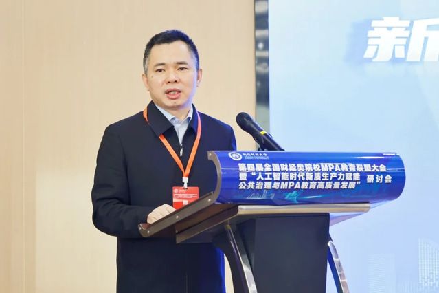 新闻网讯 交流智慧精髓,展望未来愿景。10月26日上午,第四届全国财经类院校MPA教育联盟大会在新疆财经大学学术交流中心开幕。来自全国29所高校的60位领导、嘉宾、代表,围绕“人工智能时代新质生产力赋能公共治理与MPA教育高质量发展”主题深入交流探讨。新疆财经大学党委常委、副校长周铭山,新疆行政管理学会副会长、自治区政务服务和公共资源交易中心副主任赵琰,全国财经类高校MPA教育联盟理事长、江西财经大学党委常委、副校长李春根,全国公共管理专业学位研究生教育指导委员会委员、华东师范大学公共管理学院院长、博士生导师孟溦分别在开幕式上致辞。新疆财经大学公共管理学院院长、MPA中心主任于凯主持开幕式。我校公共管理学院院长张广科,党委书记王建荣,副院长田进率队一行5人参加本次大会。