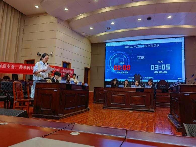(通讯员 石心蕊)为进一步提升学生对安全防范知识的重视程度,公共管理学院研究生会联合信息与安全工程学院研究生会、刑事司法学院研究生会、法学院研究生会、统计与数学学院研究生会于10月18日晚在文泰楼模拟法庭(一)举办了“共建网络安全,共享网络文明”辩论与知识竞赛。本次辩论与知识竞赛包括辩论赛和知识竞赛两个部分。