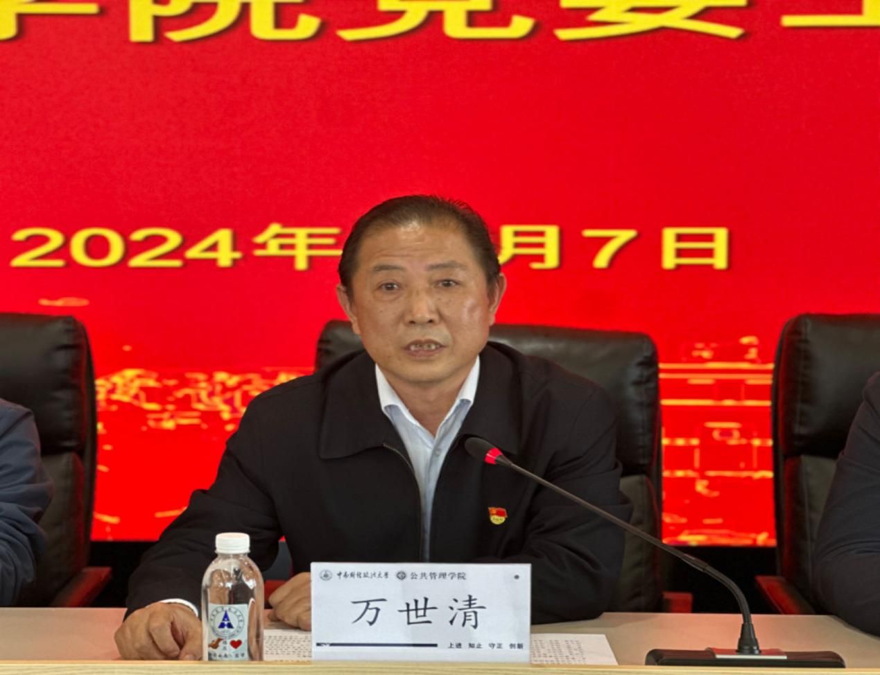 校纪委副书记、校党委巡察办公室主任张文剑,校党委巡察办公室副主任夏东伟;第四巡察组组长万世清,副组长司维、汪正君,组员唐皓、郑盼、陈长军、司志莲;公共管理学院领导班子成员、党委委员、纪委委员、系主任、教研室主任、教工党支部书记、党政管理全体工作人员、教师代表、离退休教职工代表等参加会议。会议由公共管理学院院长张广科同志主持。