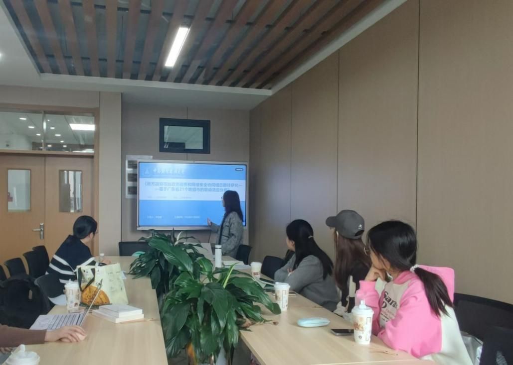 新闻网讯(通讯员:赵瑶瑶)2024年11月8日,行政管理系本科生双周论坛(第3期)在文瀚楼北803B会议室成功举行。行政管理专业2022级本科生李福蓉以“地方政府在线政务服务和网络安全的组态路径研究——基于广东省21个地级市的fsQCA联动效应分析”为题,进行了汇报。会议由行政管理专业2024级研究生赵瑶瑶主持,行政管理与公共政策教研室主任杨朦老师指导,行政管理系各年级本科生参加。