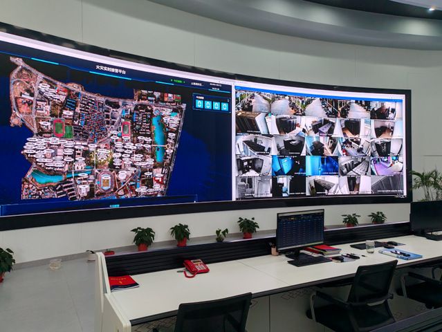 随后大家在李方奇老师的引导下有序进入消防监控中心。一进门,大家被整整一面墙的监控屏幕吸引,屏幕上清晰地显示着校园内各个重点区域的实时画面,从教学楼的走廊到机房,从电动车充电站到学生宿舍的楼道,无一遗漏。