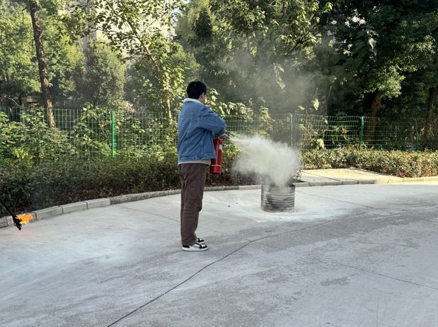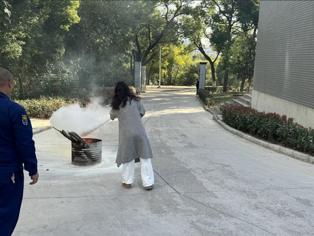 随后,学校消防队员详细介绍了校园内常见的火灾隐患类型,从电器使用不当到易燃物品违规存放等,一个个真实的案例图片让同学们深刻认识到火灾隐患可能就潜藏在日常的点滴疏忽之中。并带领同学们来到微型消防站,这里陈列着各式各样的消防器材,如灭火器、消火栓、消防水带、正压式呼吸器等。工作人员拿起灭火器,一边熟练地演示其操作步骤,一边对照着“应急处置技术与策略”课程中的相关知识点,为同学们详细剖析灭火器在不同火灾类型下的选用依据、灭火原理以及操作时的关键动作要领,还邀请同学们亲自上手操作体验。面对同学们关于不同场景下如何选择合适消防器材的疑问,消防队员也都一一进行了细致解答,现场气氛十分活跃。