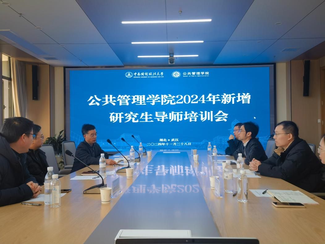 为全面贯彻党的教育方针,落实研究生导师立德树人职责,提升学院研究生导师队伍建设水平,11月28日下午,学院于文瀚楼东801开展2023-2024年度新晋研究生导师培训会。公共管理学院党委书记王建荣,公共管理学院副院长田进,行政管理专业导师组组长李明强,社会工作专业导师组组长薛新东,新晋研究生导师曾益、陈美、杨起城、关阵等参加培训会。会议由田进副院长主持。