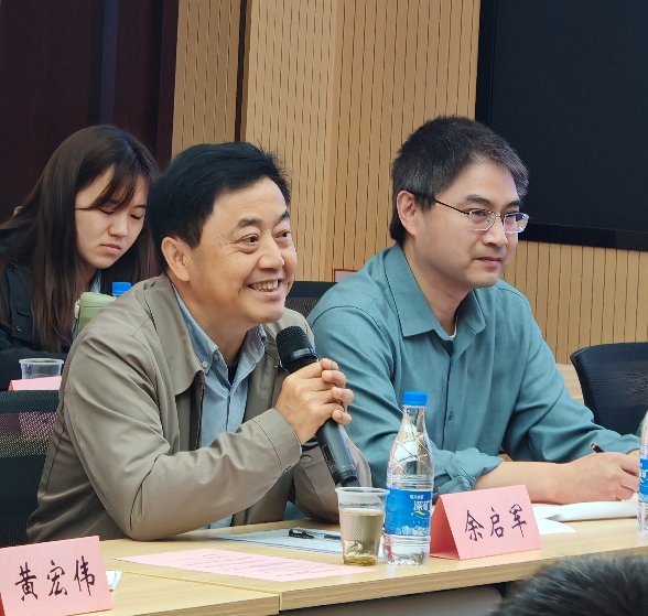 会议的第一项,由黄宏伟老师致欢迎词。黄老师介绍了公共管理学院劳动学科团队的师资力量、专业设置、培养方案,还介绍师生团队和实务部门的合作概况,以及公共管理学院学生的实习、就业和职业发展状况。