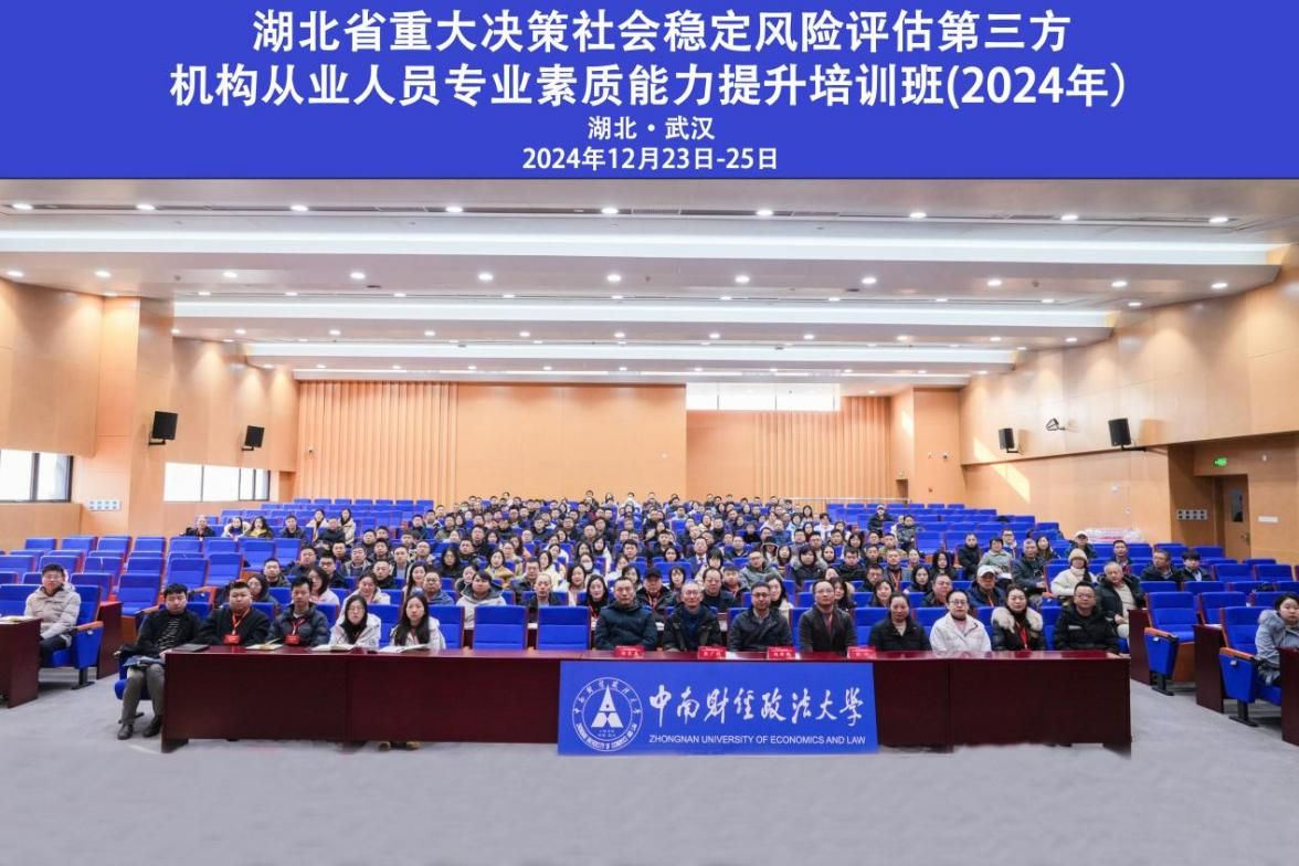 在落实中央和国家相关文件要求下,2024年12月24日,湖北省重大决策社会稳定风险评估第三方机构从业人员专业素质能力提升培训班(2024年)在我校南湖校区文瀚楼南报告厅隆重开班,本次培训由湖北省委政法委指导,湖北省重大决策社会稳定风险评估研究中心和米兰电竞·(中国区)公共管理学院共同主办。米兰电竞·(中国区)公共管理学院院长、党委副书记、湖北省重大决策社会稳定风险评估研究中心主任张广科、湖北省委政法委维稳指导处徐东磊、赵新鹏参加开班,湖北省重大决策社会稳定风险评估研究中心常务副主任、公共管理学院应急与公共人力资源管理系主任张行副教授主持开班仪式。同时,来自湖北省各地市近250位社会稳定风险评估第三方评估机构从业人员参加培训会。