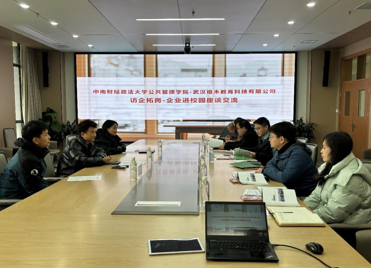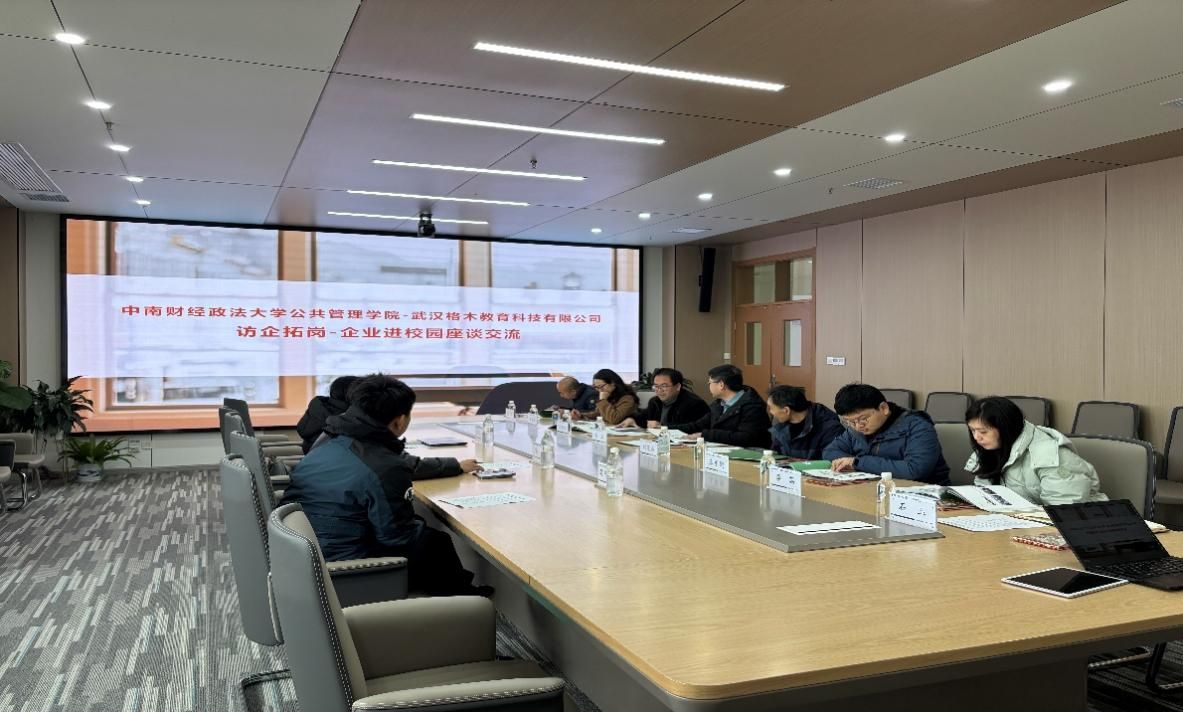 2025年新年伊始,公共管理学院与武汉格木教育科技有限公司达成了校企实习实训暨供需对接就业育人合作意向。此前,双方于2024年12月27日下午在我校文瀚楼东801会议室共同举办了访企拓岗暨校企合作座谈交流会。学院党委副书记刘茂盛、副院长熊卫、党委委员及行政管理系主任李云新、学生工作办公室主任李荔、行政管理系副主任王军鹏、行政管理系副主任黄容霞、行政管理系公共事业管理教研室主任凌双以及学生工作办公室毕业班级辅导员石玉出席了会议。武汉格木教育科技有限公司品牌总监陈亮、运营总监司马贤丰、人力行政总监刘敏代表企业参会。
