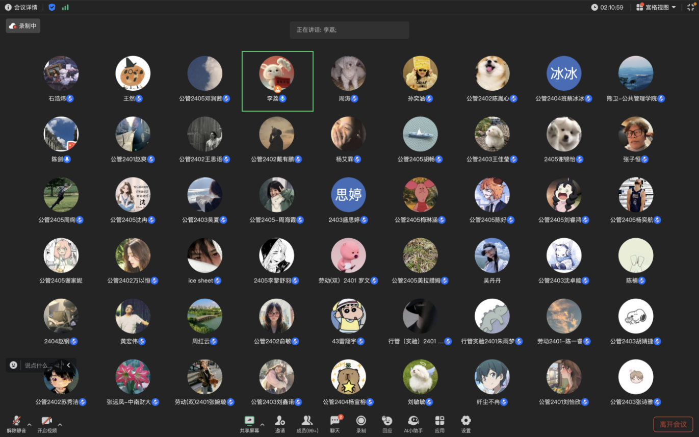 公共管理学院副院长熊卫教授、2009届校友陈剑、2021级本科生梁鸿威在线指导并分享了宝贵经验,学工办主任李荔老师总结发言。公共管理学院的大一新生及其他高年级学生积极参与,大家纷纷表示受益匪浅。