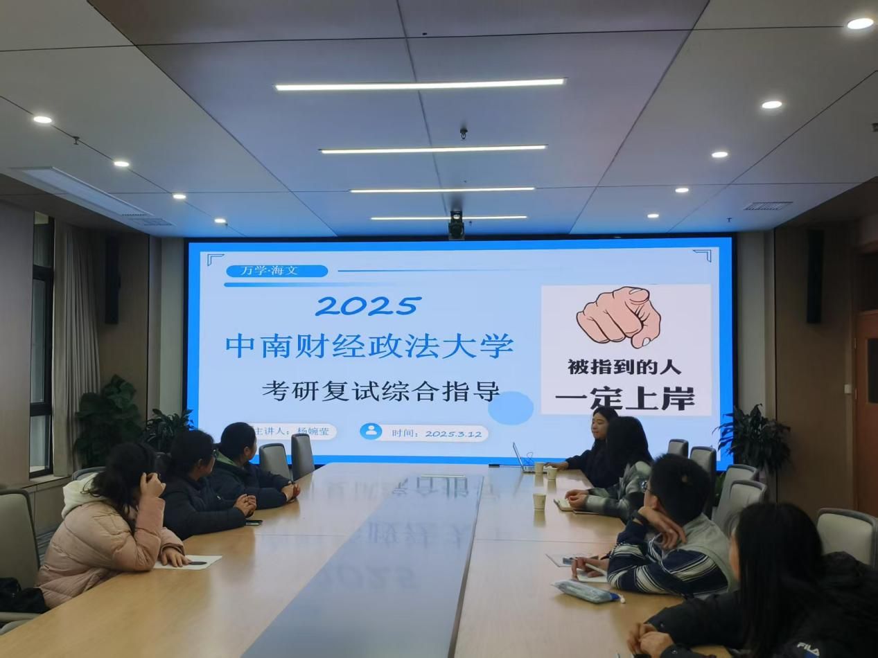 新闻网讯(通讯员 刘裔冰)为帮助我院2025届考研学子顺利开展复试,学院于3月12日下午2:30在文瀚楼东801会议室组织开展了考研复试指导培训讲座。本次讲座特邀请到海文考研机构资深专家杨婉莹老师作为主讲人,内容涵盖复试流程规划、简历撰写技巧、面试礼仪、导师邮件沟通技巧以及调剂流程等五大核心板块,旨在帮助考生全面掌握复试要点,提升复试通过率。