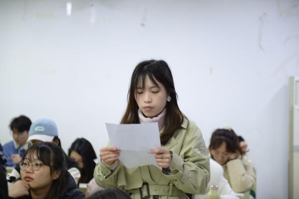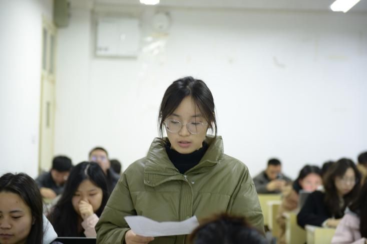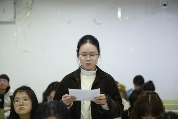 在随后的学生发言环节,四名研究生代表结合专业特色多维度阐释青年担当。杨杰同学聚焦两会精神,提出公共管理学子应立足政策分析与基层实践,以数据赋能推动治理现代化;王黛玉同学从思想淬炼、学业精进、实践锻炼三个层面,强调要全面提升综合素质服务国家需求;梁佳茵同学通过公共管理案例大赛经历,展现社科研究对接社会痛点的价值,倡导以“小而实”的解决方案助力基层治理创新;黄宝仪同学立足应急管理专业,阐述构建现代化治理体系过程中青年学子的特殊使命,提出通过风险预判与应急处理能力建设守护人民安全。四位同学的发言展现青年学子将学术深耕与社会需求深度耦合的自觉意识,通过政策设计、民生改善、风险防控等多元路径践行“强国有我”的青春誓言。