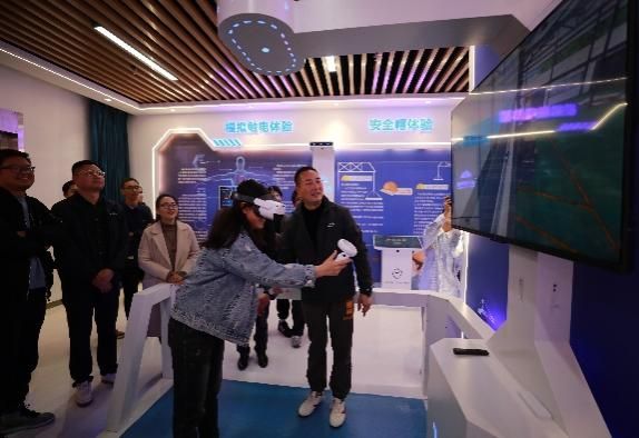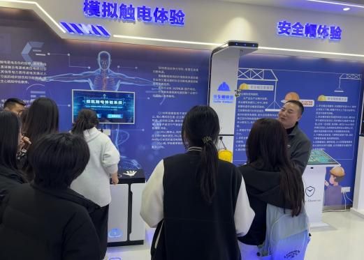 研习中同学们感到最兴趣盎然的是参观体验室。这间体验室以安全生产教育为核心,借助各类体验系统与工厂VR设备,打造出沉浸式的学习场景。同学们跃跃欲试,纷纷参与实操体验。在触电模拟区域,大家小心翼翼地将手放在指定位置,当轻微电流通过时,真切感受到触电瞬间的麻木与惊悚,深刻领悟到安全用电的重要性。