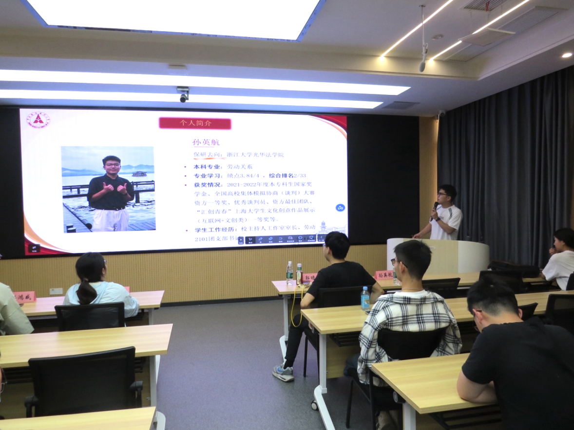 下午2:00,分享会准时开始,来自2021级的本科生孙英航结合自己推免至浙江大学的经验展开分享,他详细介绍了推免流程,从夏令营到预推免再到正式推免,他为大家梳理了完整的保研时间线。他强调,申请推免研究生需要有清晰的自我定位,要结合自身情况和目标院校要求,做好成绩提升、科研积累、专业知识学习、竞赛参与等准备工作。同时,他还针对面试、笔试等具体环节分享了经验。