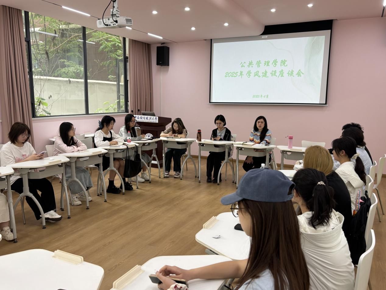 新闻网讯(通讯员:李荔、周海婧)4月11日上午,公共管理学院学风建设座谈会在首义校区一站式学生社区思园107室召开,院学习发展中心负责人李荔主持会议,2024级全体学习委员、各班学生代表参会,共商学风建设举措,凝聚协同育人合力。
