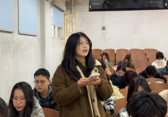 随后,在交流研讨环节,邹李天翔同学结合毛泽东同志"笔杆子与枪杆子"的重要论述,分享了新时代青年如何以理论武装头脑、以实践锤炼本领的思考。肖天娇同学以"人民万岁"的深情告白为切入点,结合《毛泽东年谱》阅读感悟,生动展现了伟人从韶山走向中国革命核心的成长轨迹。刘立雯同学以"孩儿立志出乡关,学不成名誓不还"的豪迈诗句为引,呼吁青年既要胸怀"国之大者",更要脚踏实地关注基层发展,在中国式现代化建设中贡献青春力量。