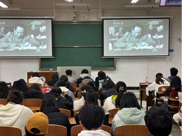 活动伊始,同学们共同观看纪录片《走进毛泽东》节选,通过珍贵影像资料深入学习毛泽东思想的理论精髓与实践品格。当影片呈现毛泽东同志在开国大典上庄严宣告"中国人民从此站起来了"的历史场景时,同学们备受鼓舞,现场响起热烈掌声。