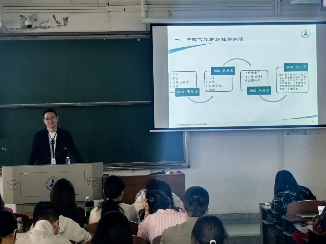在随后的理论学习授课上,李明强老师以“党的领导与中国式现代化”为主题,深入阐述了党的领导在中国式现代化进程中的核心地位和关键作用,他指出中国式现代化是中国共产党领导的社会主义现代化,具有鲜明的中国特色和独特优势。课程详细解读了中国式现代化的内涵,强调中国式现代化不是“国强必霸”的西方模式,而是人口规模巨大、全体人民共同富裕、物质文明和精神文明相协调、人与自然和谐共生、走和平发展道路的现代化道路。