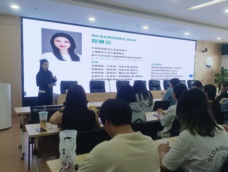 新闻网讯(通讯员胡慧娟)为拓宽毕业生就业渠道,搭建国际化就业桥梁,5月6日下午,湖北省非洲民间商会会长单位——肯尼亚金狮集团在我院文瀚楼东814会议室举办专场宣讲会。湖北省非洲民间商会副会长、金狮集团董事长程琳云担任主讲,学院百余名学生参会。