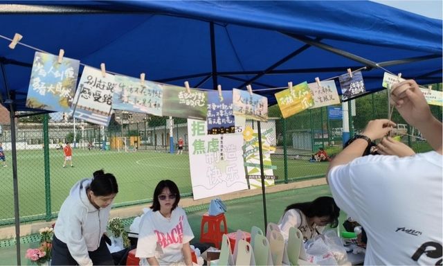 现场还设置“抛开焦虑”主题展板,参与者们用沙包投掷,投入中空的孔洞即可解锁奖励,现场笑声不断,同学们在投掷间释放压力,用轻松互动践行“抛开焦虑,轻装前行”的治愈理念。