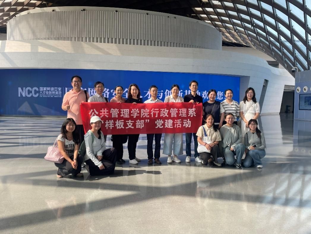 新闻网讯(杨珊珊 余怡特)2025年5月29日,为深入贯彻中央八项规定精神学习教育,行政管理系党支部围绕“锲而不舍落实中央八项规定精神,持续深化纠‘四风’树新风”主题和行政管理(数字治理)专业建设特色,联合教师党员和学生党员前往国家网络安全与人才创新基地培训中心开展主题党日活动。活动由支部书记魏萍主持,学院党委书记王建荣、行政管理系党员和非党员教师、学生党员代表参与此次活动。